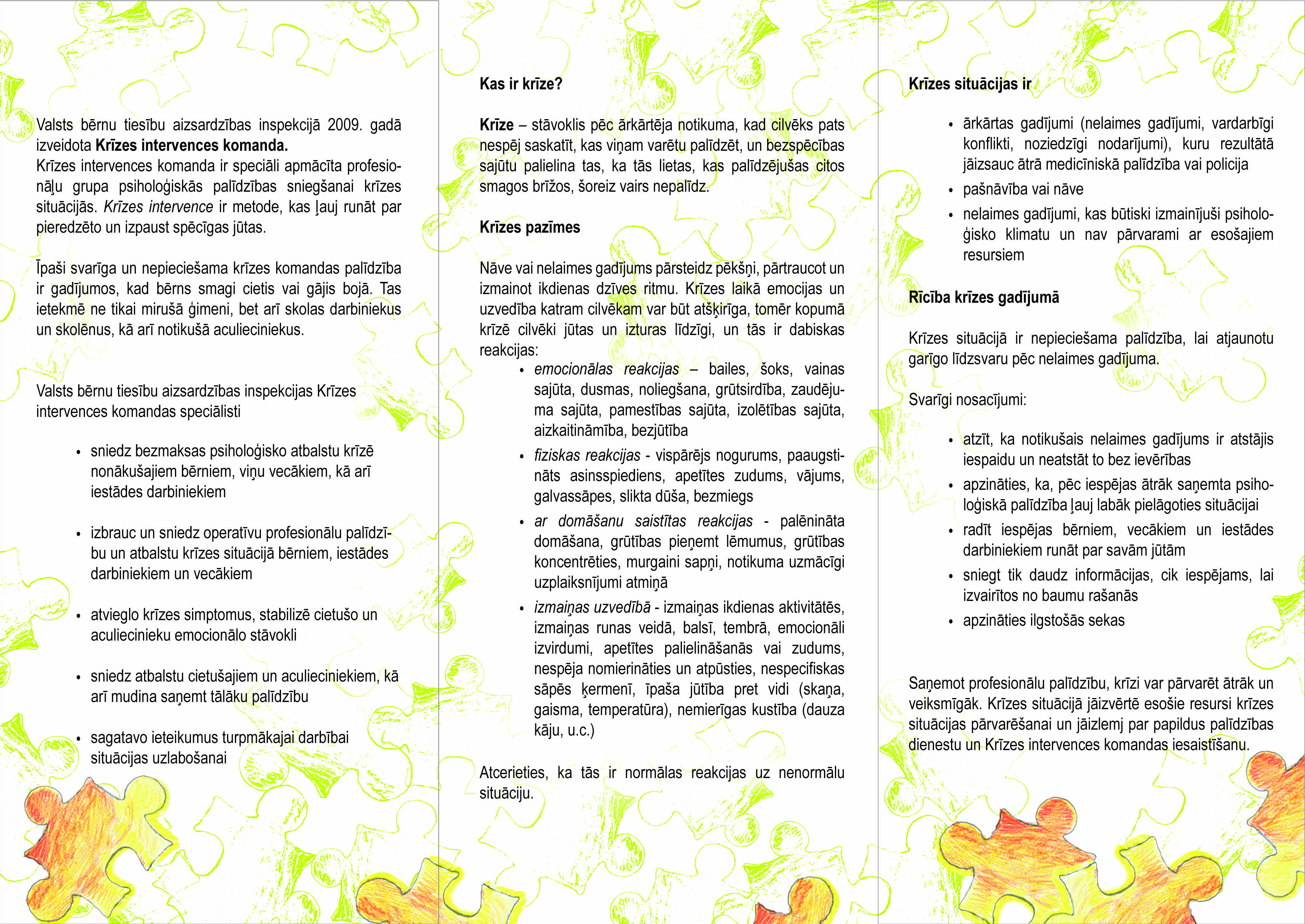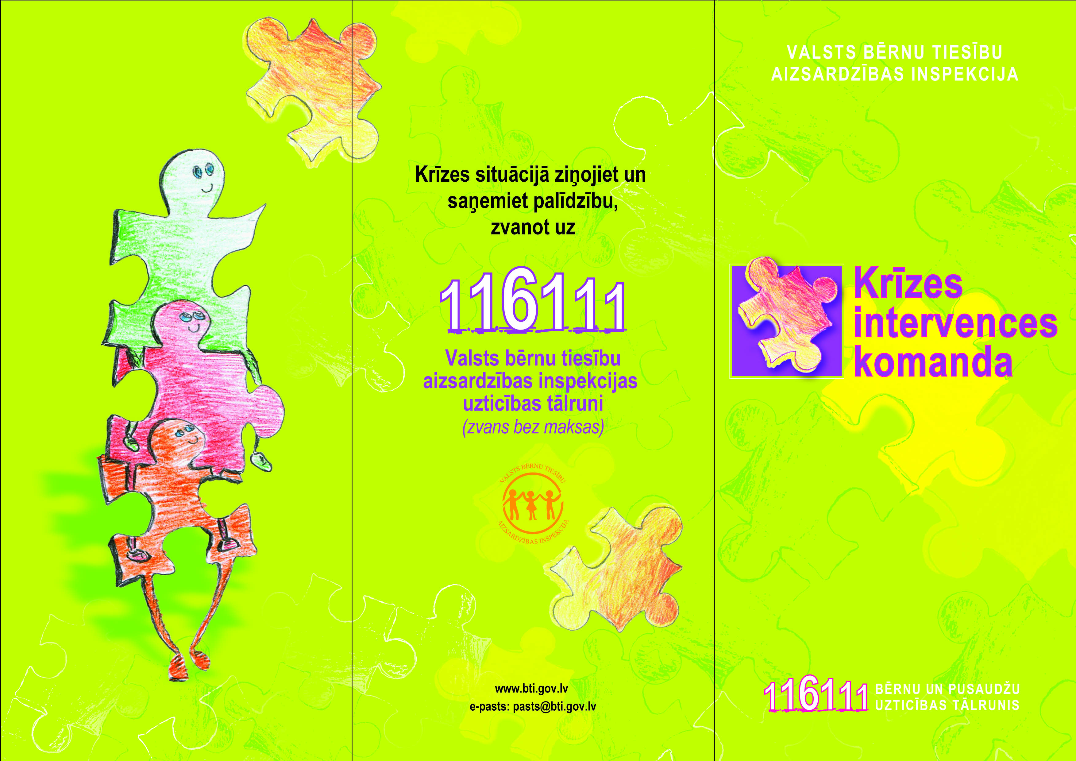 „Krīzes intervences komanda” ir informatīvs materiāls, kas sniedz informāciju par iespējām saņemt operatīvu palīdzību akūtas krīzes gadījumā, kā arī apraksta izplatītākās krīzes pazīmes un situācijas